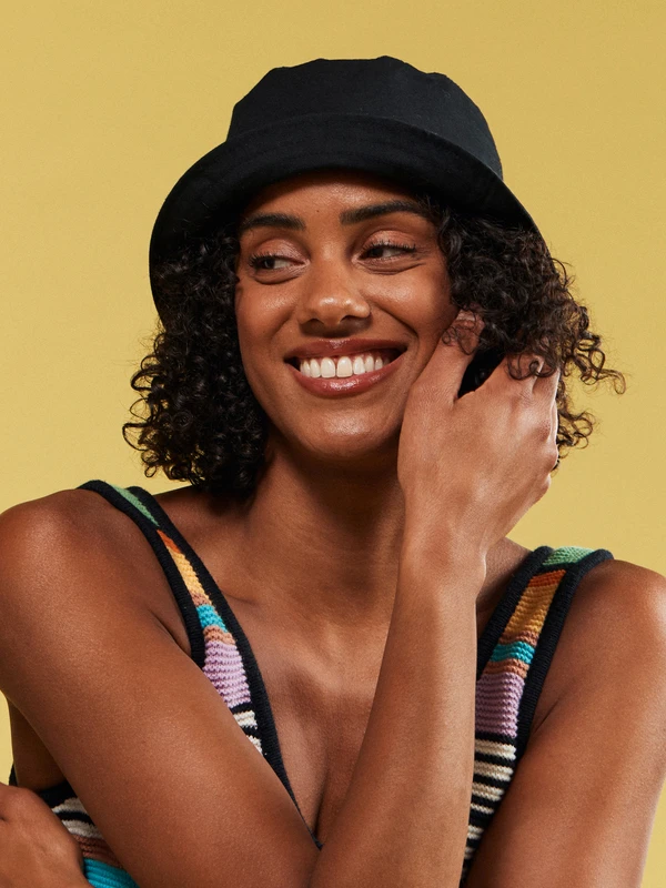 Made in cotton canvas, this wide-brim solid bucket hat gives 90s skater vibes with a modern twist.