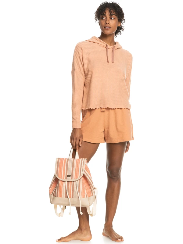 Your beach day sidekick. This printed canvas backpack features one main compartment for your daily essentials and secures with a snap button closure.
