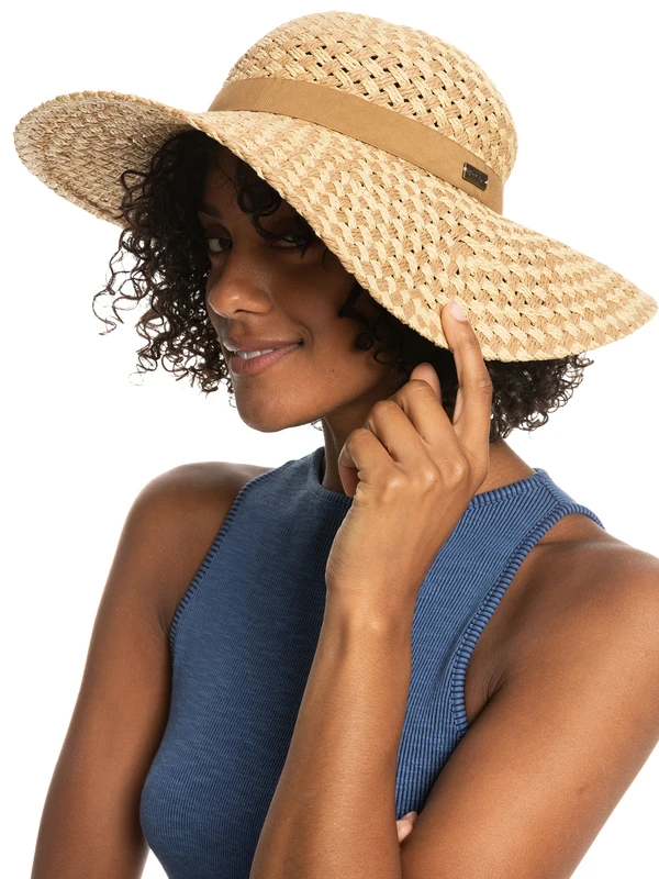 With a cool woven pattern, this wide-brim straw hat is perfectly oversized and totally fun in the sun.