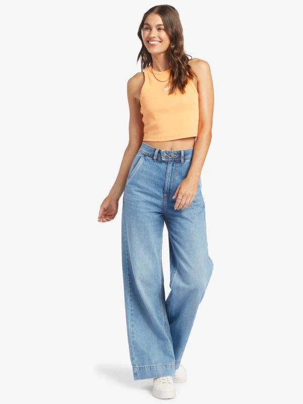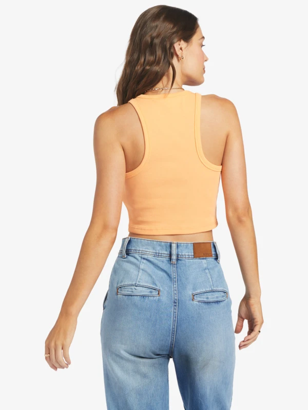 The perfect blend of sweet and sporty, this cropped tank top is made of a soft and stretchy ribbed knit-blend fabric with a trendy high-neck design.
