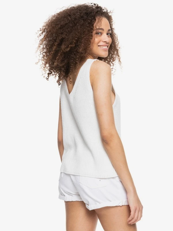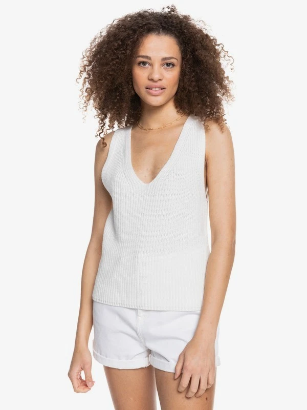 Go for a stroll on the boardwalk with this sleeveless sweater featuring an acrylic blend yarn. The comfortable fit features a cute v-neckline and allover rib knitting.