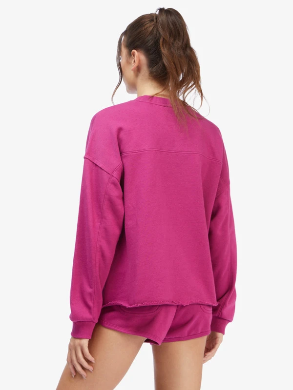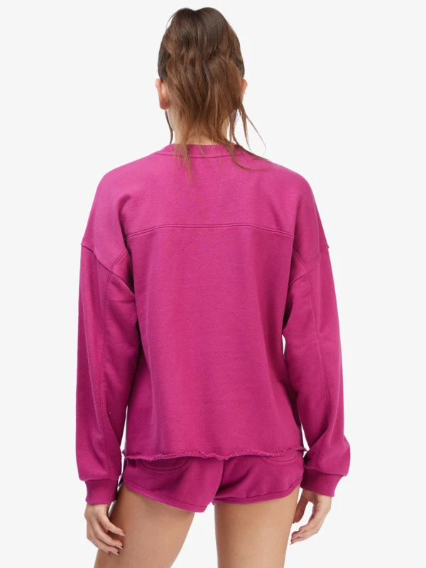 It’s all about simple surf style with this crew neck sweatshirt for women. Cut from cotton polyester French terry in a relaxed fit with dropped shoulders and a raw edge hem. Finished with original screen-printed logo at the front.
