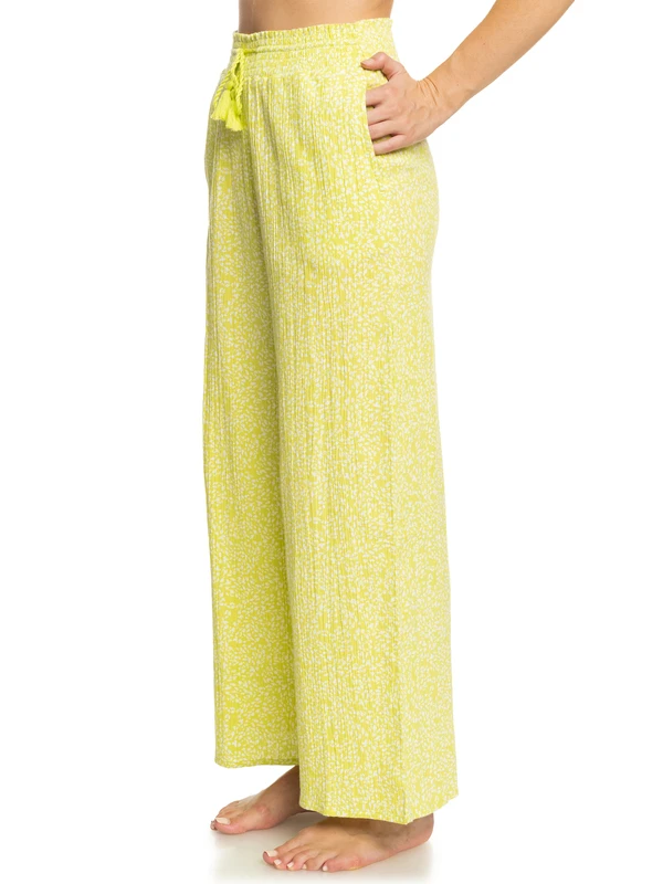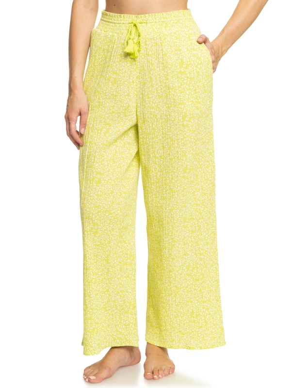 Dreaming of wandering barefoot in the sand in the Drift Away printed beach pants? Us too. Made of airy cotton crepe, these lightweight pants have a smocked waistband, drawcord tassels, side pockets, and a breezy wide leg.