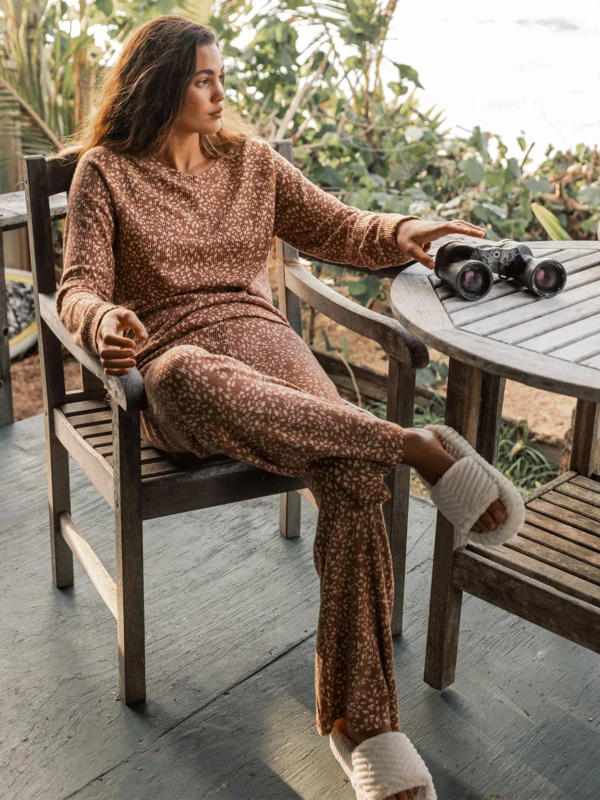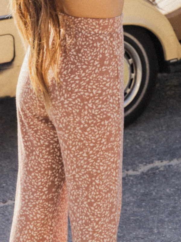 Made of super-cozy ribbed knit fabric, these printed pull-on pants pair a high-rise elastic waist and a classic straight leg. So easy and comfortable, they’ll quickly become your lazy-day go-tos.