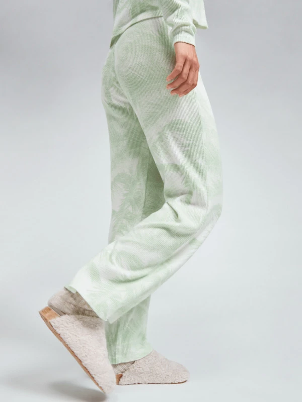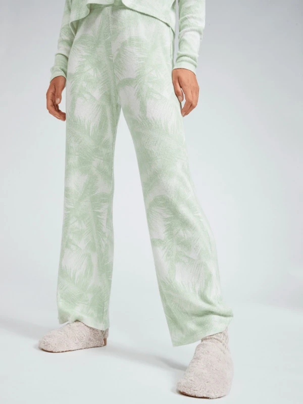 Made of ribbed knit-blend fabric, these printed lounge pants pair a high-rise waist and an easy, straight leg. Wherever you’re chilling, you’re never far from the palms.