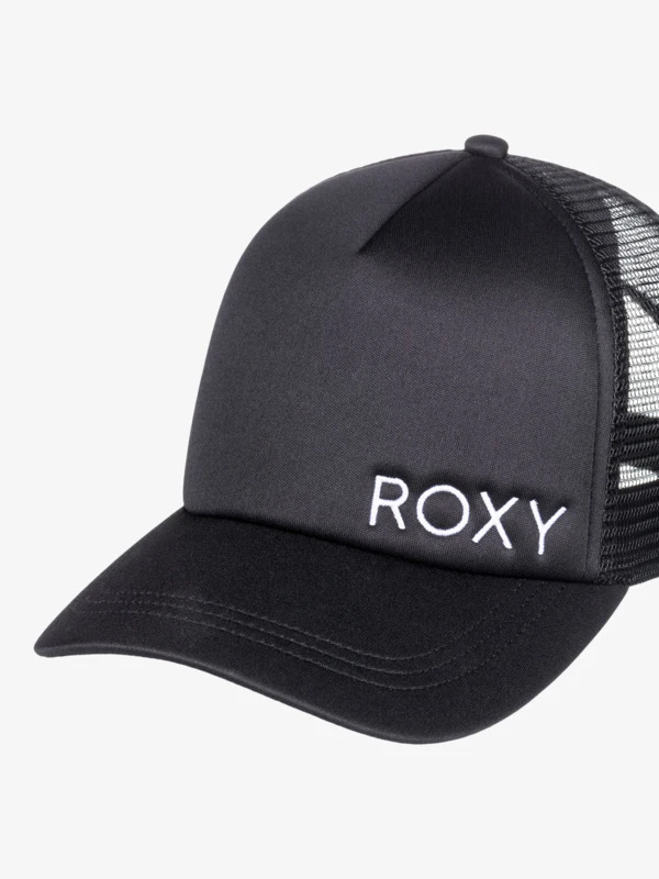 Nothing says core surf style like this classic black trucker hat featuring ROXY logo branding. Lightweight and easy to wear, it features a foam front panel and all-mesh backing for breathability, plus a plastic snapback closure to quickly create the perfect fit.