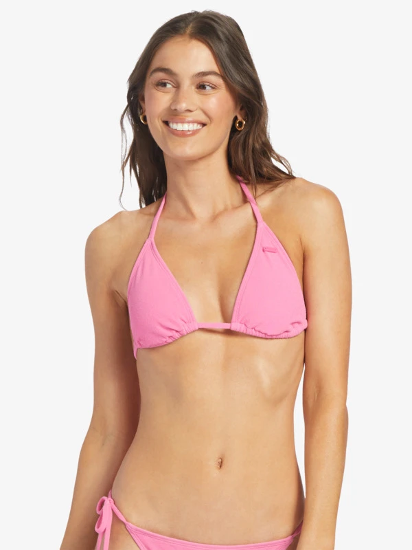 Nothing says dreamy 70s surfer like terry texture. Made of feel-good recycled fabric, the Hawaiian Heat triangle bikini top pairs it with a rad print and tie straps.