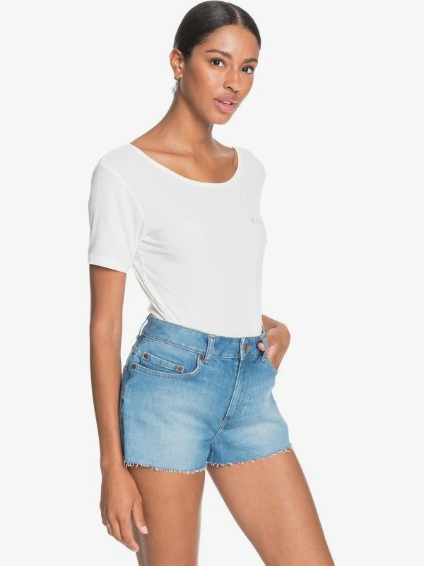 Kissing The Swell Denim Shorts will become your new favorite Daisy Dukes. From the beach to summer gatherings, the mid-rise waist and lightweight cotton-blend fabric with whiskering and fading details offer all-day comfort. A 5 pocket design and raw edge complete the classic look.
