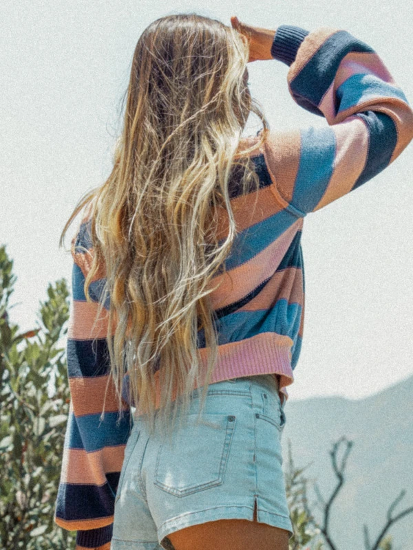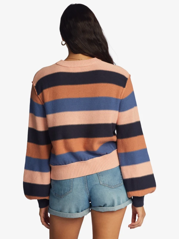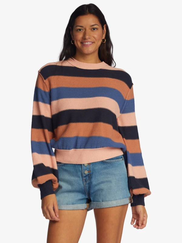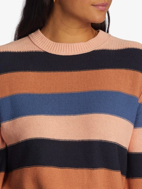 Made with mid-weight cotton-blend acrylic, the Loft Music knit sweater is a Roxy staple with its one-of-a-kind comfort. The striped pullover features a classic look with a Roxy touch. Complete with dropped shoulders and rib-knit collar, cuffs, and hem.