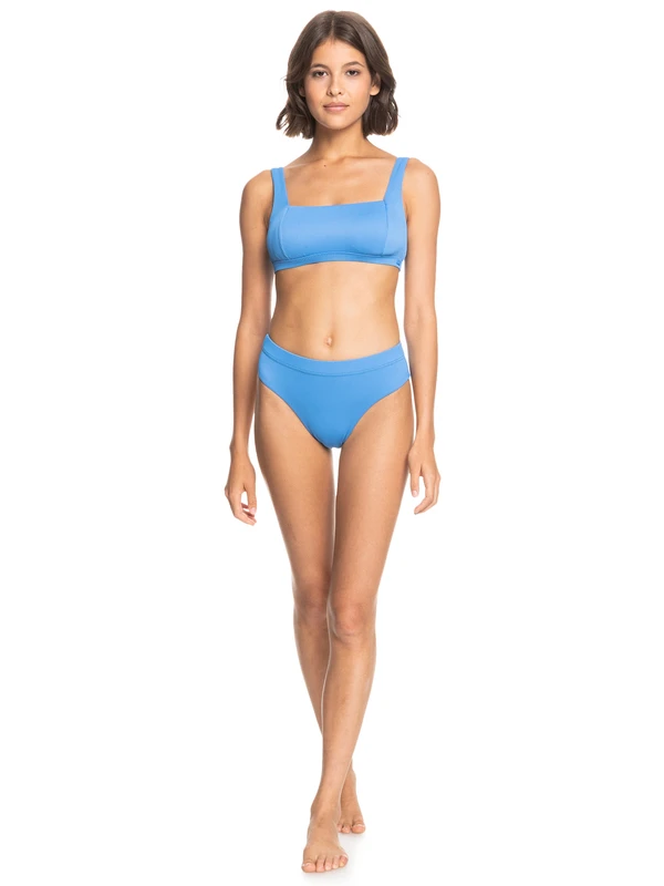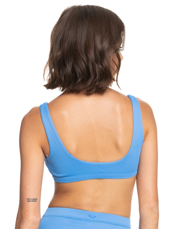 Made of recycled rib swim fabric, this solid pullover bralette bikini top is a sporty essential for active beach days. Styled with a square neck and fixed straps, it features removable cups and a comfy underband for extra support.