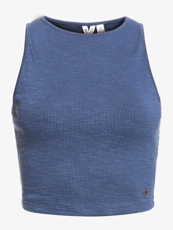 Made of a ribbed knit-blend fabric, this solid cropped top has a high-neck shape to give it a retro edge.