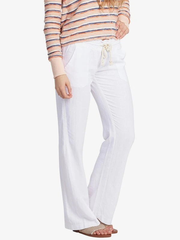 With a jute rope belt and a flared leg, the Oceanside pants are the easiest way to perfect your warm-weather style. The comfy pull-on pants are crafted in blended flax linen with an elastic waistband, front and back pockets, and a small, embroidered logo.