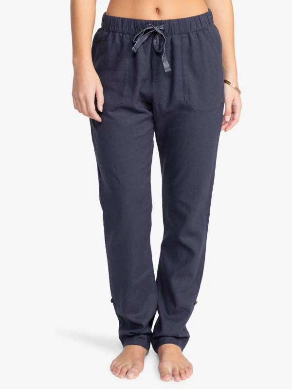 The On The Seashore pants combine a classic straight-leg fit with breathable fabric. Crafted in blended linen with a light hand feel, the beachy pull-on pants have an elastic waistband with a drawcord, front and back pockets, and a roll-able bottom hem for perfect warm-weather style.