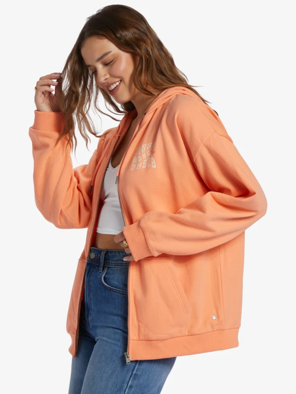 Combining an oversized fit and comfy fabric, this zip-up hooded sweatshirt has an extra soft feel plus a kangaroo pouch pocket and ROXY graphics on the chest.
