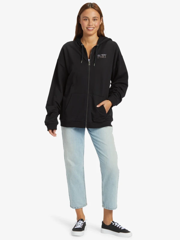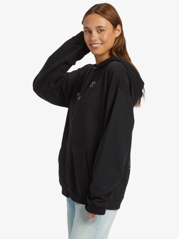 Combining an oversized fit and comfy fabric, this zip-up hooded sweatshirt has an extra soft feel plus a kangaroo pouch pocket and ROXY graphics on the chest.