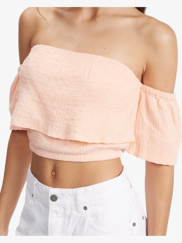 Soak up the sun in this off-the-shoulder crop top for women. The lightweight tri-blend fabric is soft and airy, while the layered front, short sleeves, and elasticized hem add a feminine finish to this Roxy original.