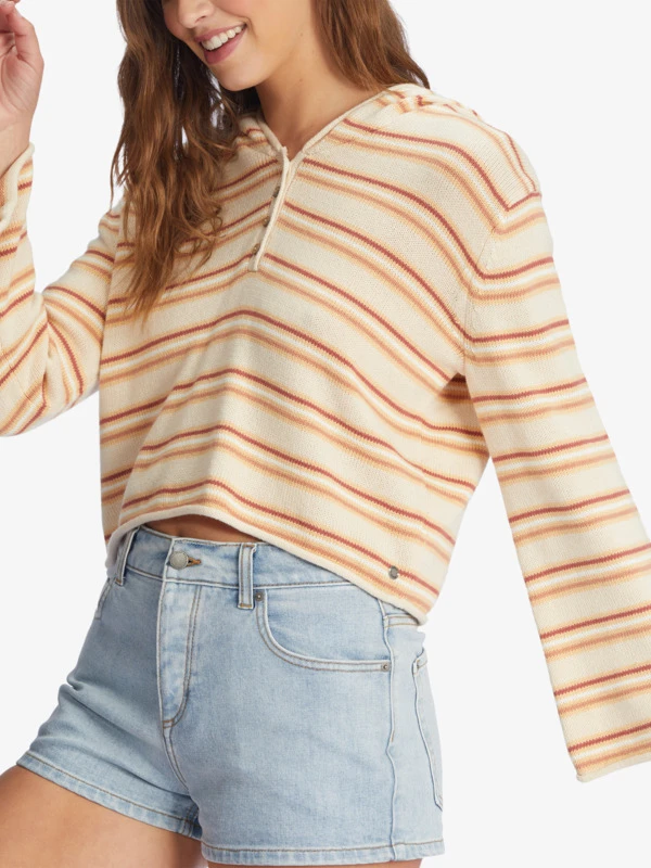 Made of striped slub yarn, this long-sleeve hooded top has a buttoned V-neckline and a relaxed shape. Like a beach poncho made for life beyond the sand.