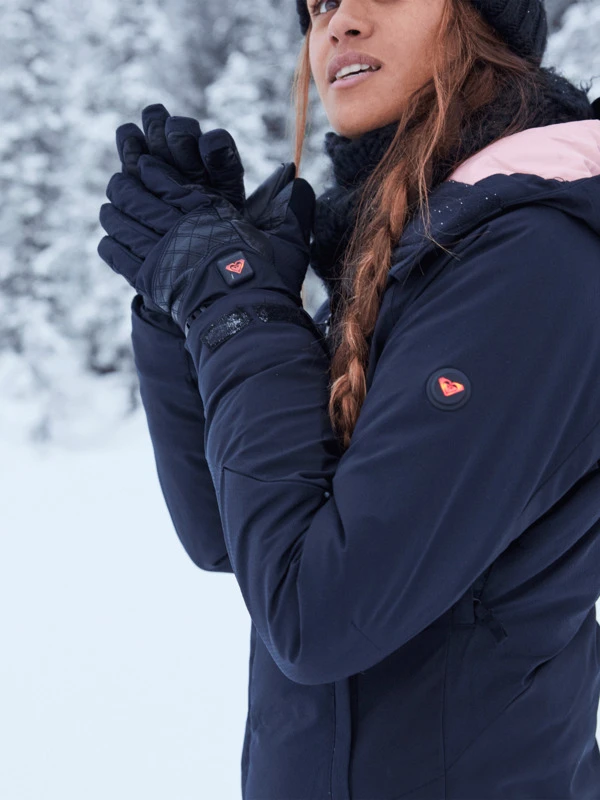 Designed with DryFlight® and WarmFlight® tech for pro-grade waterproofing and warmth, these premium snow gloves are made from a blend of recycled poly twill and sheepskin leather. The long-cuff shape keeps snow out and the integrated ROXY WARMLINK heating panel is sure to keep your hands cozy while you ride.