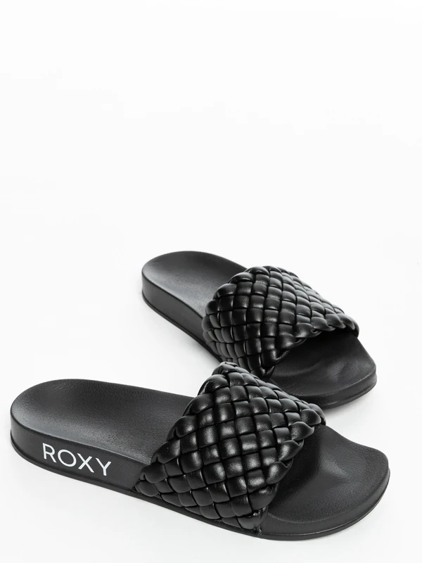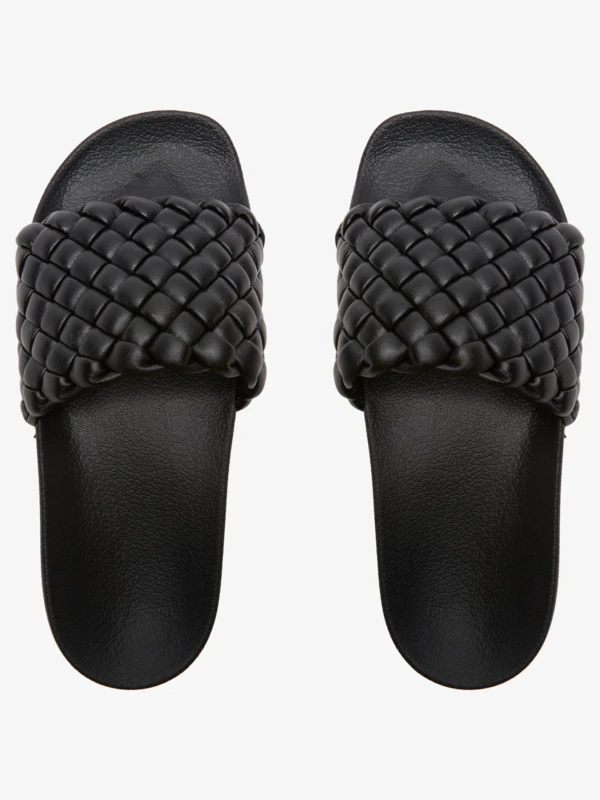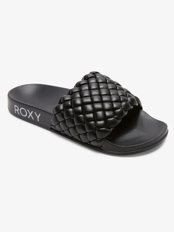 A chunky braided upper adds an eye-catching touch to these ROXY FITNESS vegan-friendly leather slide sandals, while a molded footbed and textured outsole deliver comfort and traction.