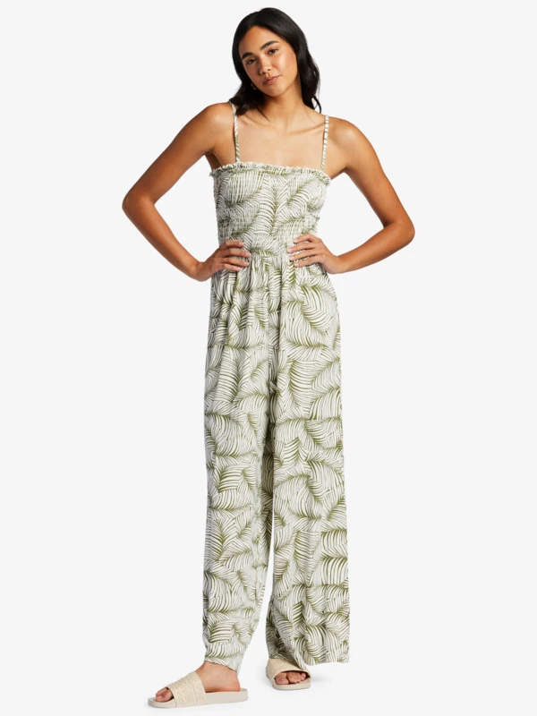 Made in an airy blended knit, this printed jumpsuit has flowy, wide legs and a smocked top that offers a comfy feel and a perfectly fitted shape.