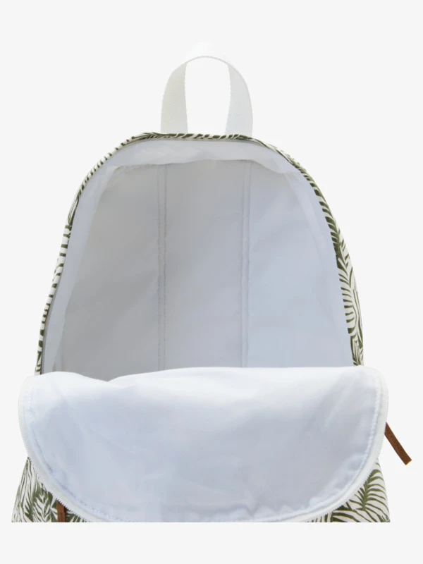 Keep close to the palms with this printed medium-size canvas backpack featuring two zippered compartments and adjustable padded shoulder straps for a comfortable fit.