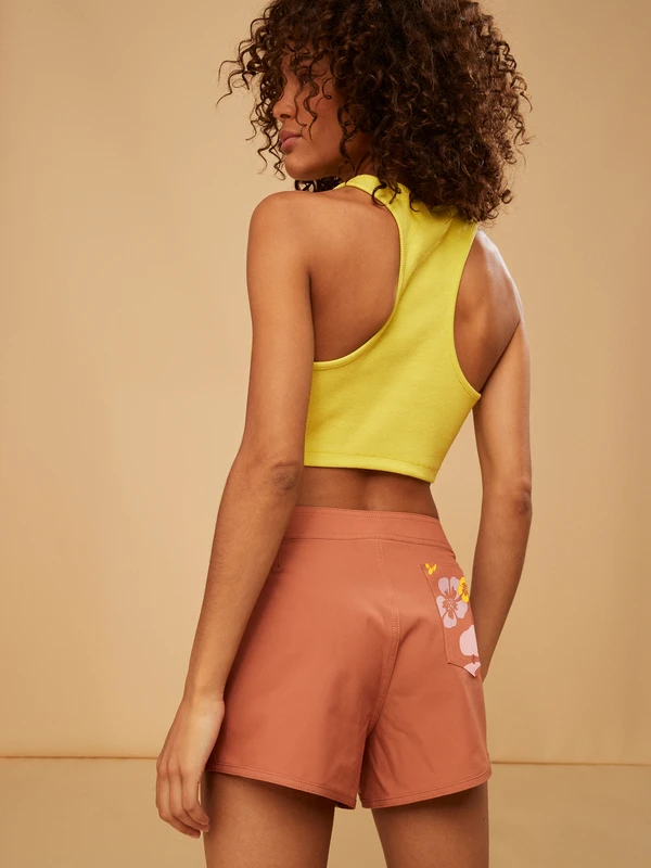 Tap into your aloha surf vibes with the Surf.Kind.Kate 2″ boardshorts. Made of 4-way stretch recycled fabric, these short women’s boardshorts feature a lace-up waistband and floral graphics on the front panels and back pocket. Sporty and surf-ready!