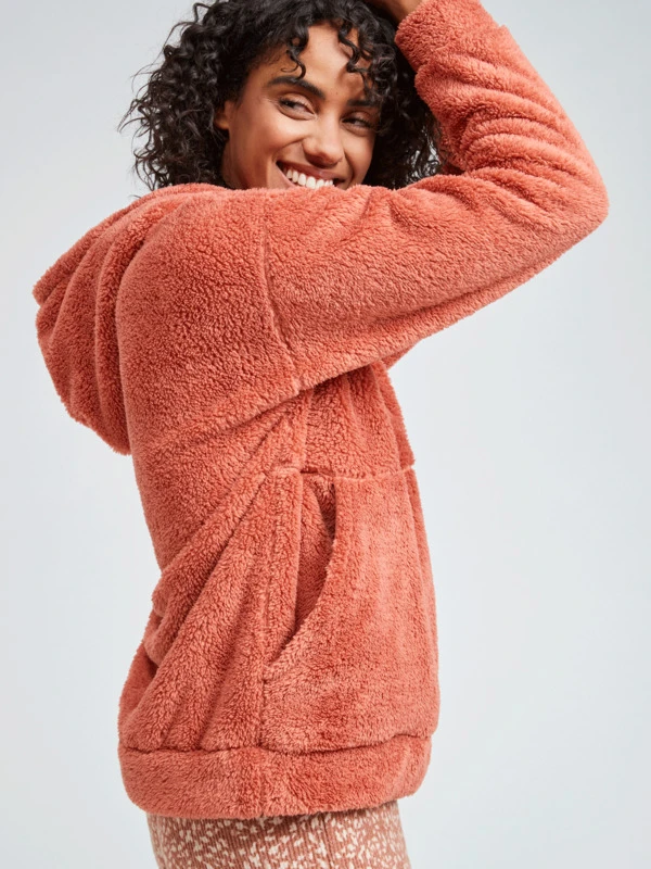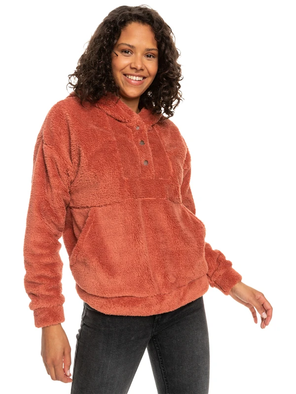 Combining an easy fit and comfy double-face sherpa fleece fabric, this cozy women’s pullover is a cold-weather adventure essential. The fuzzy half-snap hooded pullover features a large front flap pocket to stash your goods and ROXY patch branding, plus the relaxed shape is perfect for layering.