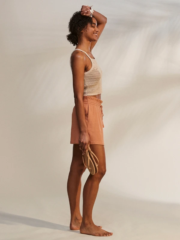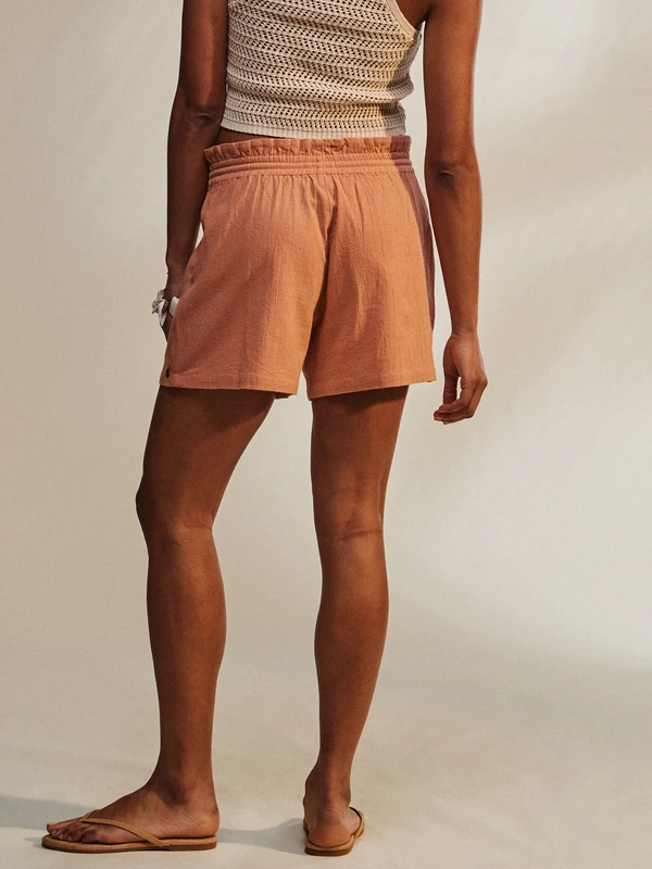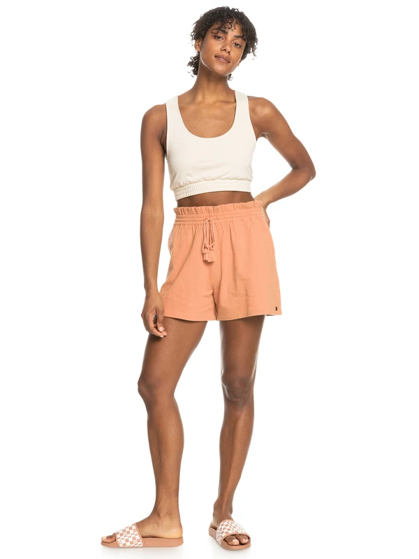 Made of cotton crepe fabric, these high-waisted shorts have an elastic waistband topped with a tassel drawcord to bring on the beachy boho vibes.