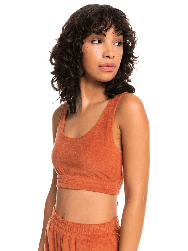 Made of organic cotton and recycled poly fabric with a plush terry-towel texture, this fully-lined cami bralette top has a wide scoop neck and an elastic underband for a comfy fit.