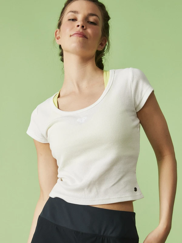 The perfect knit tee with a snug fit and a slight crop, the ROXY Time For Rib Knit T-Shirt, adds elevated touches with a ribbed crew neck and ROXY heart embroidery on the chest.