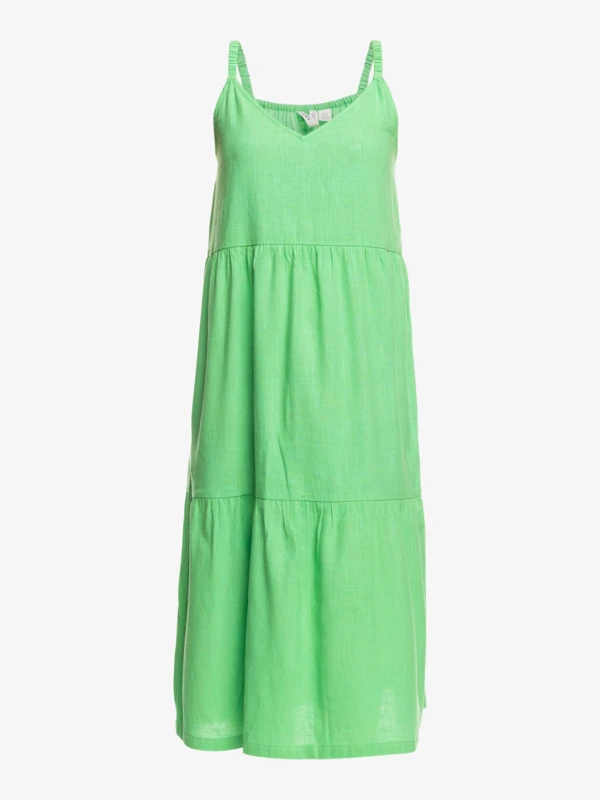 Slip into something easy with this airy midi dress made of soft cotton slub, a tiered ruffle skirt, and elastic at the back for a comfortable fit.