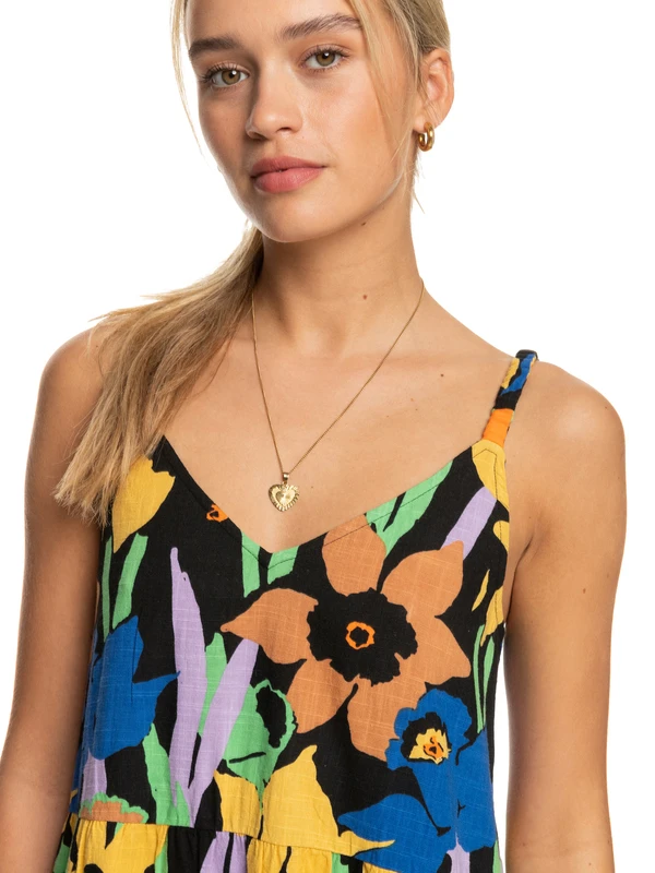 Made of printed slub fabric, this floral midi dress has an easy fit with a V-neck and a tiered ruffle skirt. Perfect for everything from city strolls to special occasions.